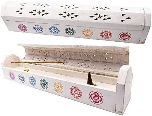 QUEMADOR DE INCIENSO DE MADERA BLANCA 7 CHAKRAS