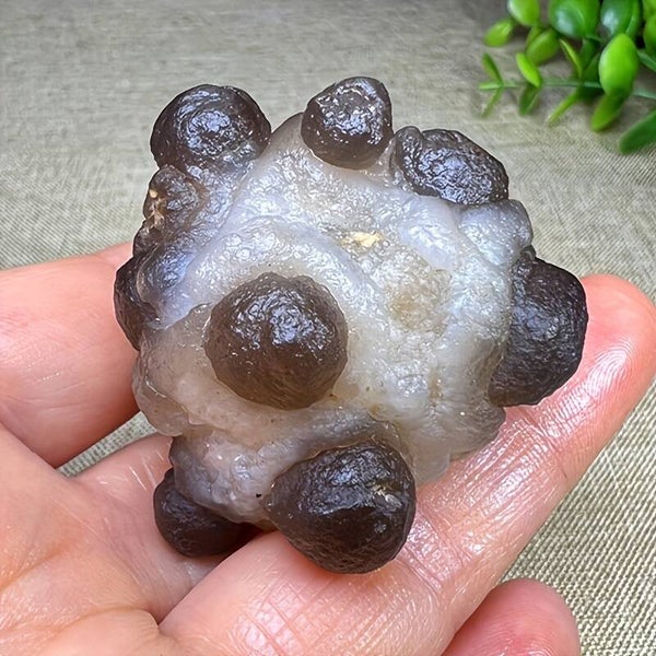 Impresionante y rara pieza de calcedonia botrioidal con una formación natural única que recuerda a racimos o burbujas.