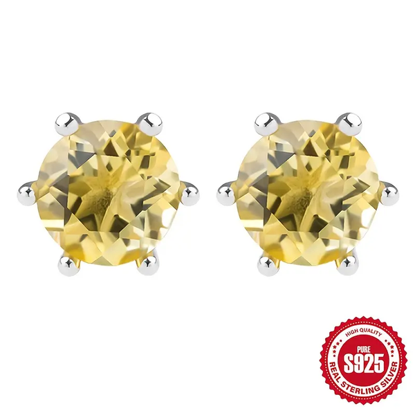 Estos elegantes PENDIENTES DE PLATA S925 irradian la vibración de la felicidad y la abundancia. Presentan una gema de CITRINO NATURAL perfectamente facetada en talla redonda, montada con un engaste de seis puntas que maximiza su brillo solar. El Citrino es conocido en la cristaloterapia como la piedra del éxito, la energía vital y la prosperidad, atrayendo luz y optimismo a quien lo lleva.